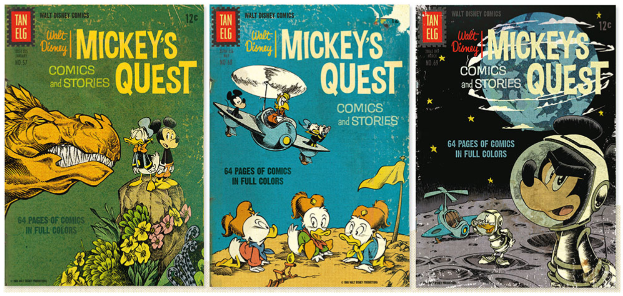 Im Vorwort zu Mickey’s Craziest Adventures behauptet der umtriebige Zeichner und Autoren Lewis Trondheim (Texas Cowboys) auf einem Flohmarkt gemeinsam mit Keramidas eine unvollständige Sammlung der von 1962 bis 1969 erschienenen Comic-Reihe Mickey’s Quest erworben zu haben.